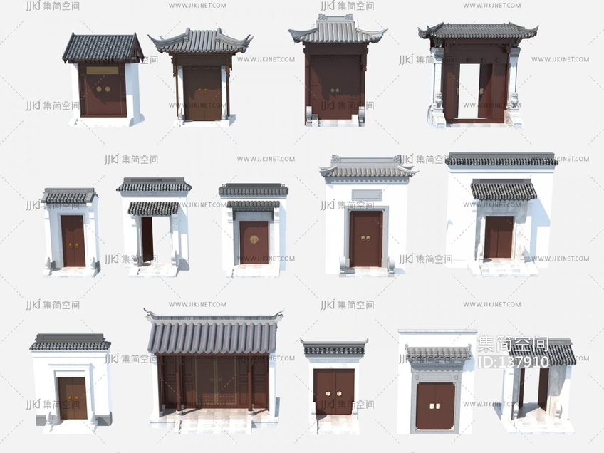 式古建别墅建筑入户门面,门头3d模型 3d模型下载 [模型ID:137910]