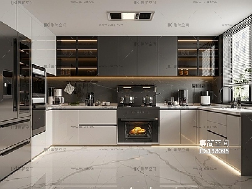 现代厨房橱柜,冰箱厨房用品 3d模型下载 [模型ID:138095]