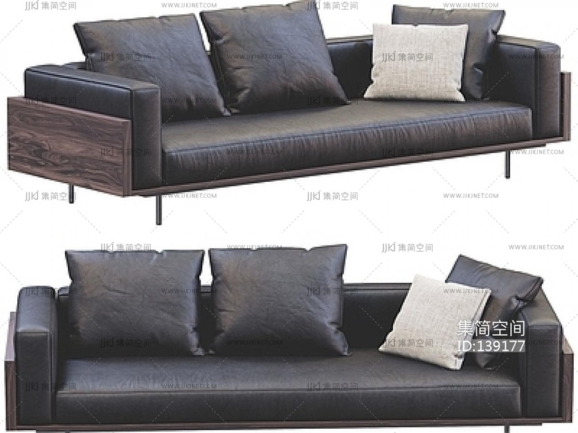 现代皮革双人沙发, 3d模型下载 [模型ID:139177]