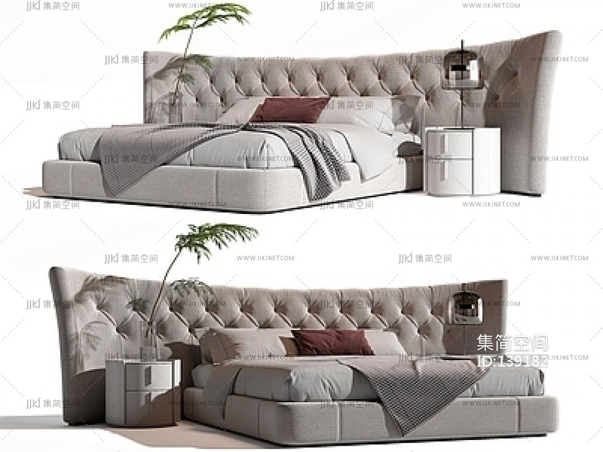 现代布艺双人床 3d模型下载 [模型ID:139182]