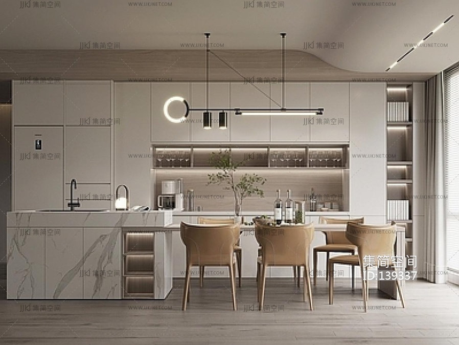 现代岛台餐厅 3d模型下载 [模型ID:139337]