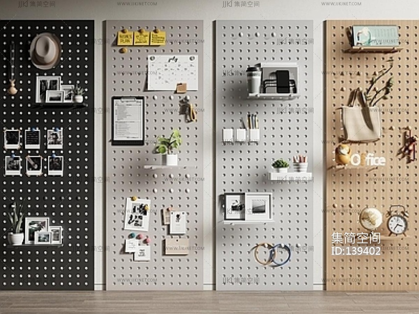 现代儿童洞洞板_置物架挂衣钩,换鞋凳层板摆件3d模型下载