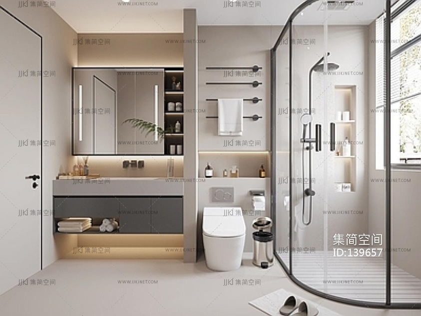 法式奶油风卫生间_洗手盆_马桶抽纸盒花瓶3D模型3d模型下载