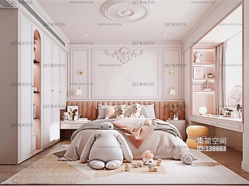 07-现代儿童房,儿童床学习桌-3d模型下载