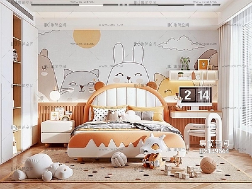 07-现代儿童房,儿童床学习桌-3d模型下载