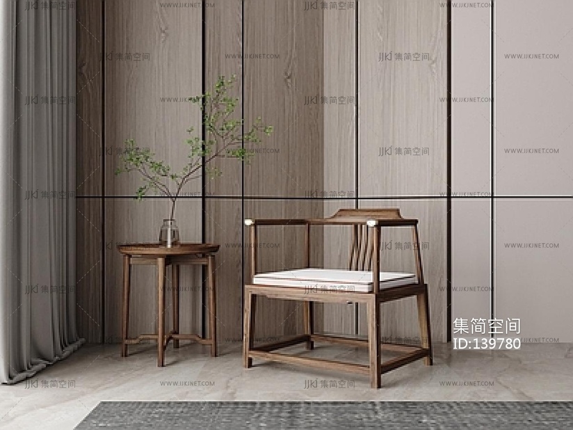 新中式实木单椅 3d模型下载 [模型ID:139780]