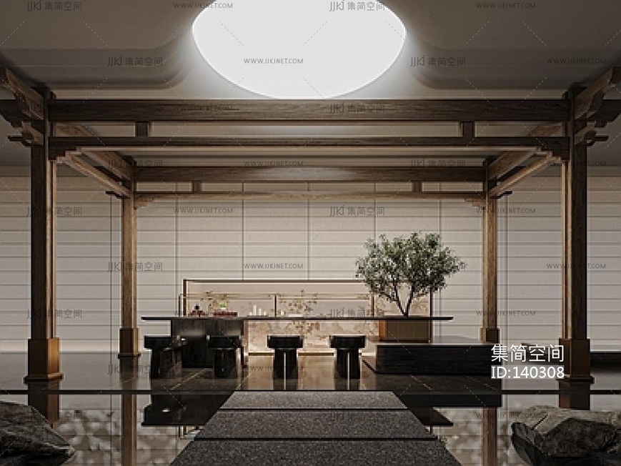 新中式茶室_ 3d模型下载