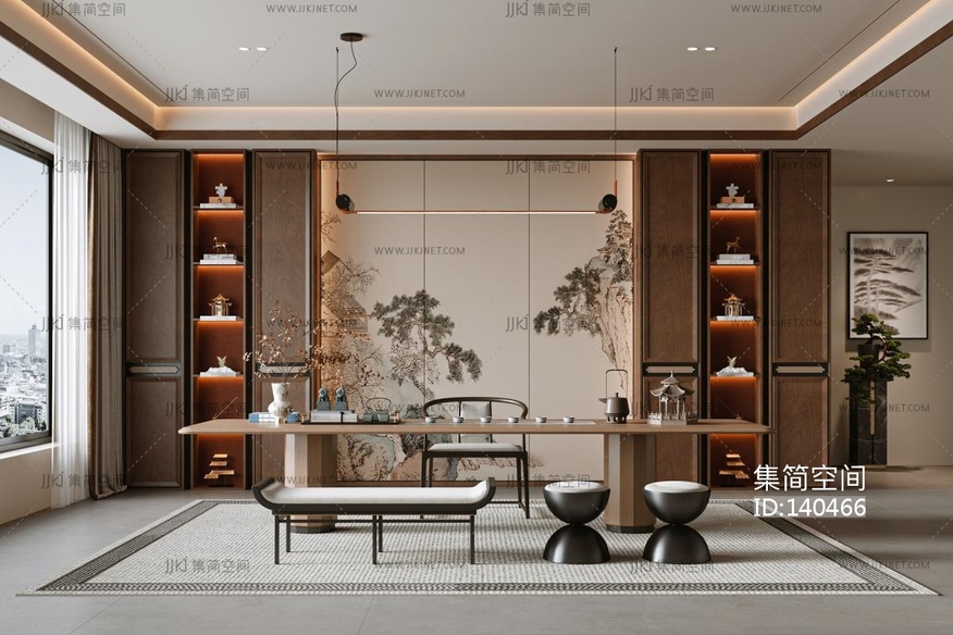 新中式茶室,茶桌椅 3d模型下载 [模型ID:140466]
