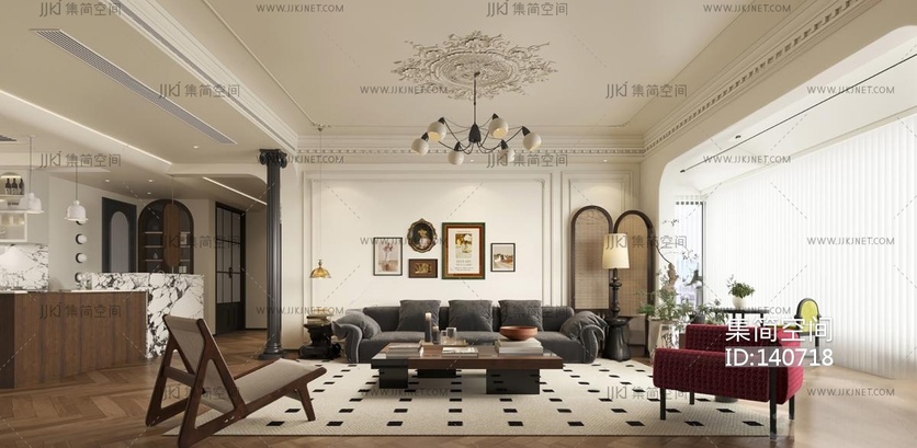 法式复古客餐厅 3d模型下载 [模型ID:140718]