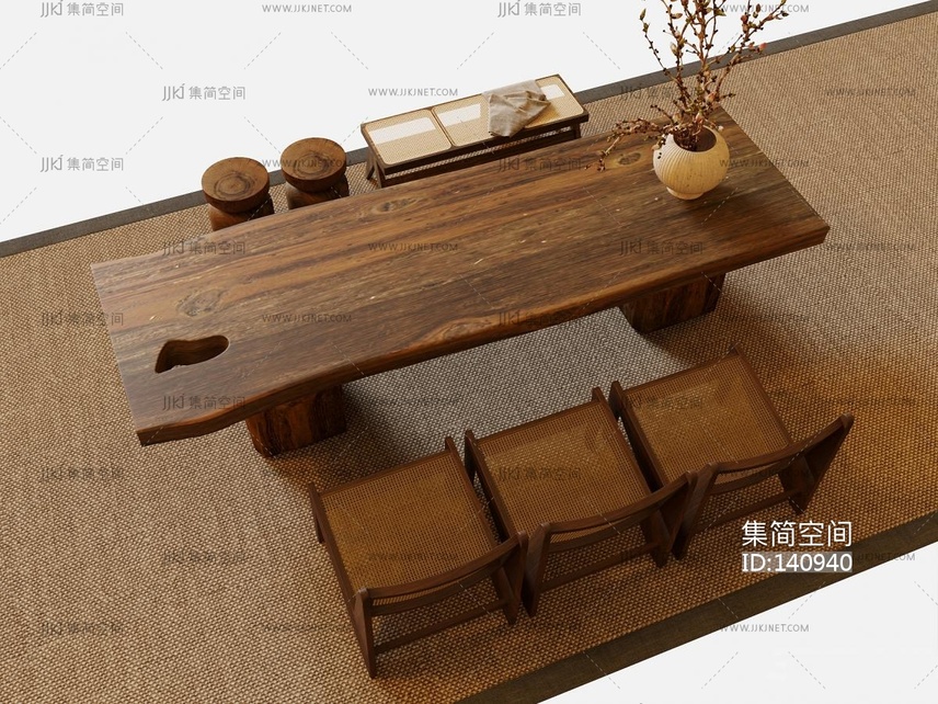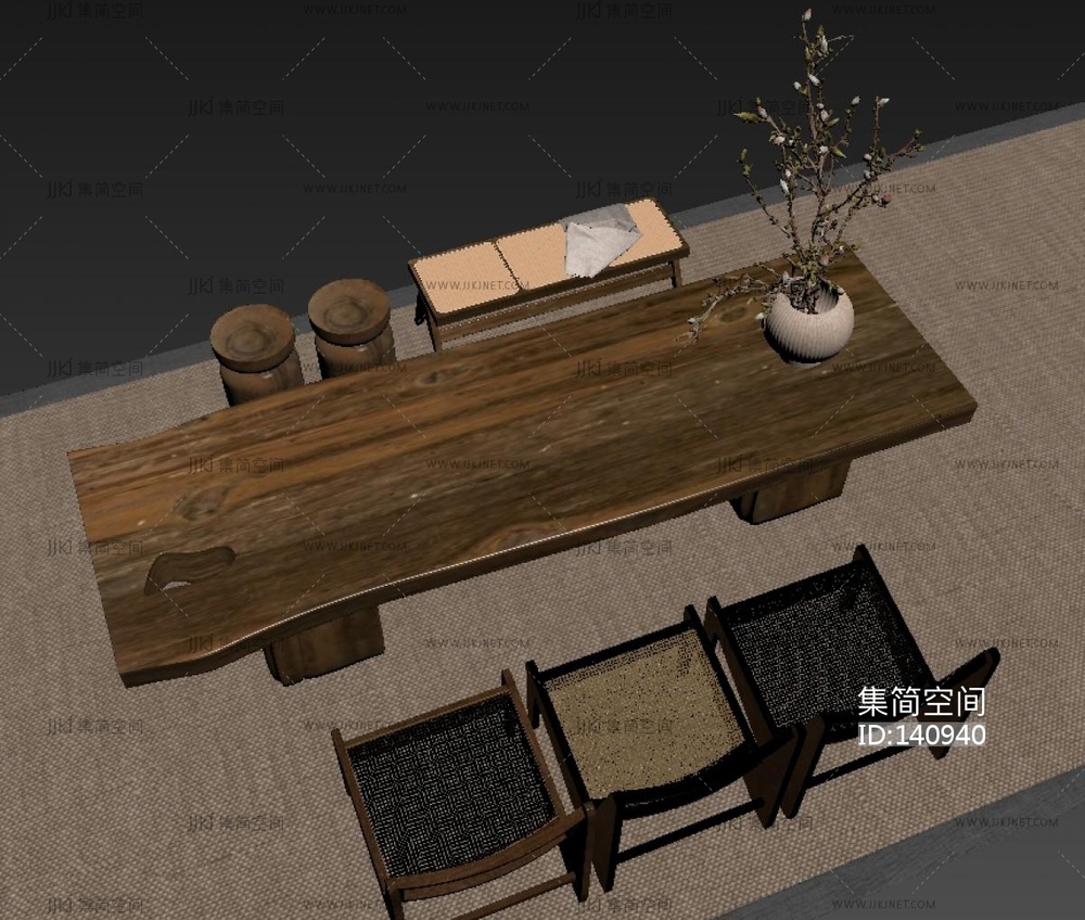 侘寂风茶桌椅, 3d模型下载 [模型ID:140940]