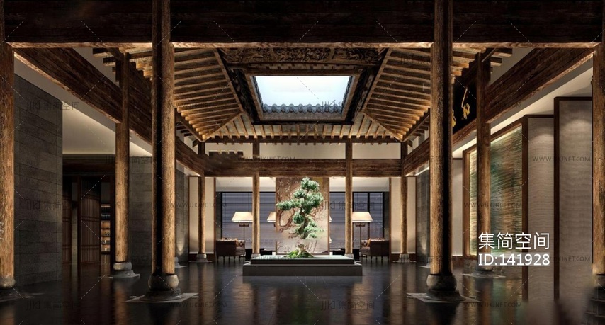 中式 休息大厅(2018) 3d模型下载 [模型ID:141928]