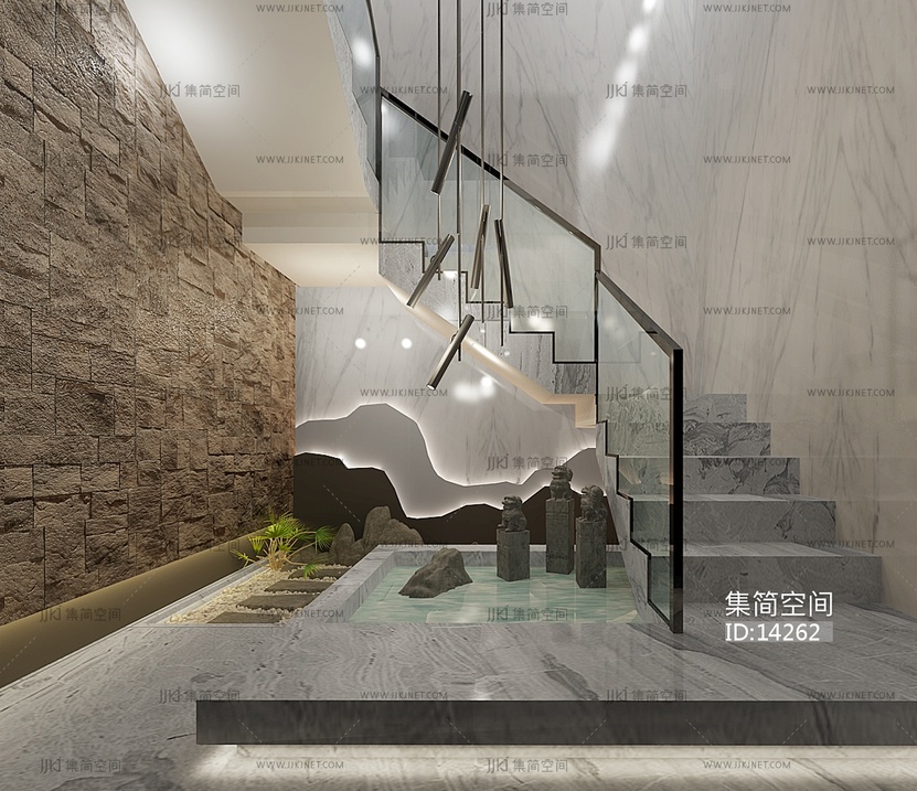 H33-1213新中式楼梯间景观 3d模型下载 [模型ID:14262]