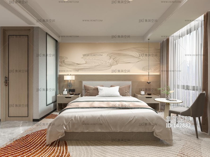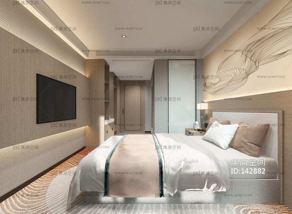 现代客房_双人床_原木客房日式客房双人床3D模型3d模型下载