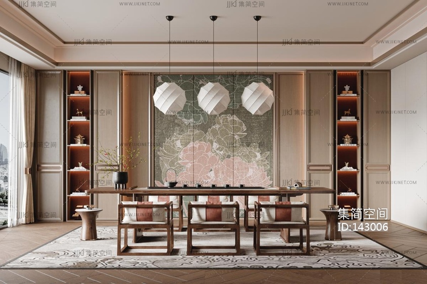 现代书房 书桌椅 壁柜 挂画 吊灯 书 盆栽 摆件3d模型下载