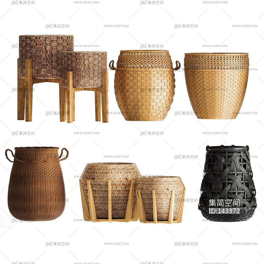 竹编篓子 3d模型下载 [模型ID:143372]