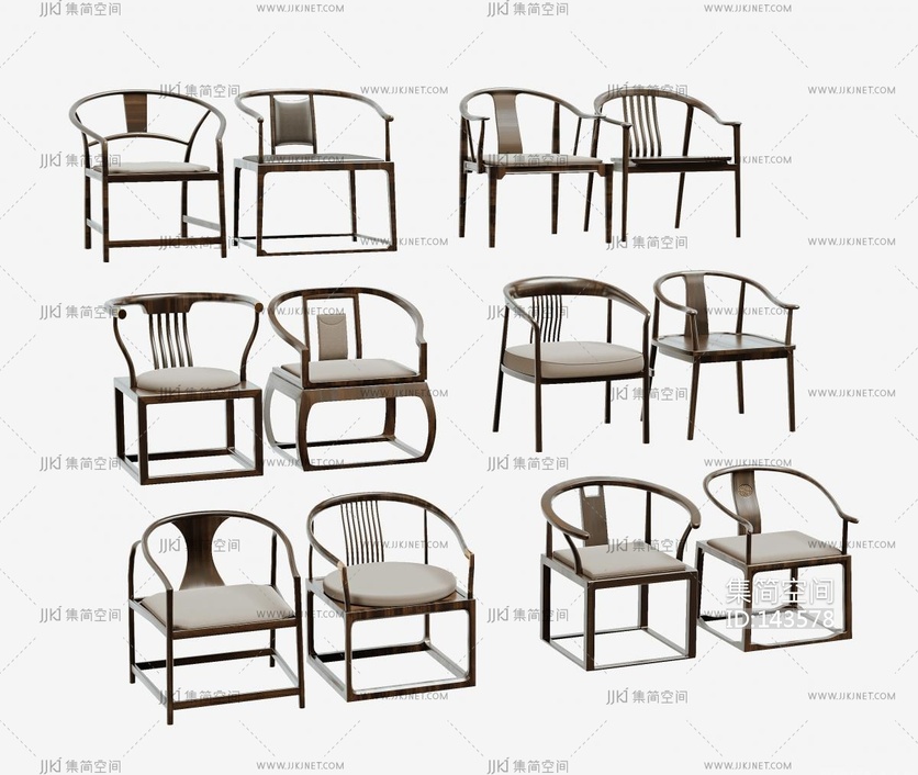 -新中式休闲椅 3d模型下载 [模型ID:143578]