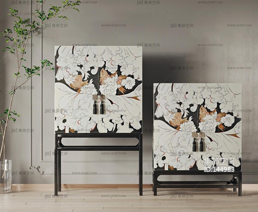 新中式装饰柜_高柜 3d模型下载 [模型ID:144983]