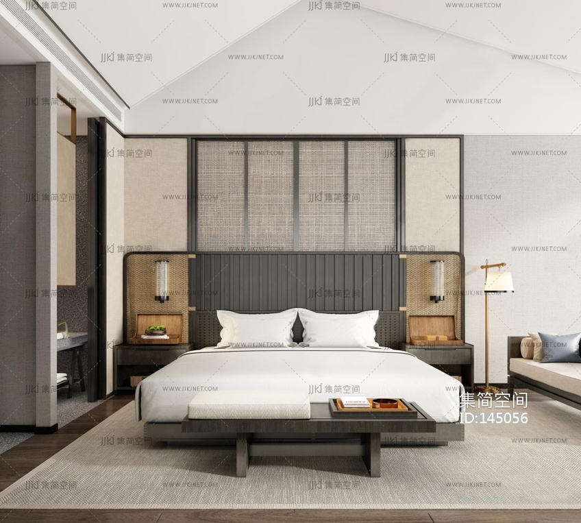 新中式酒店客房 3d模型下载 [模型ID:145056]