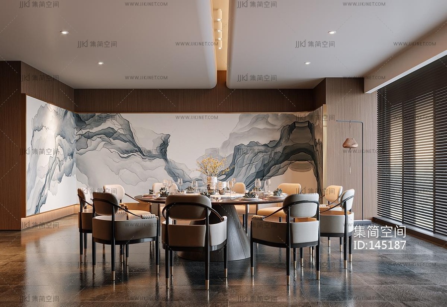 新中式餐厅包厢3d模型下载