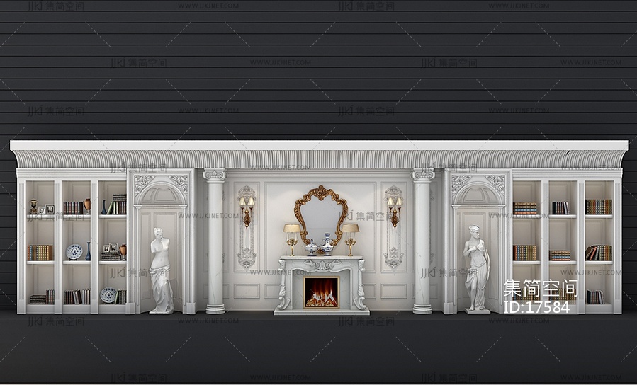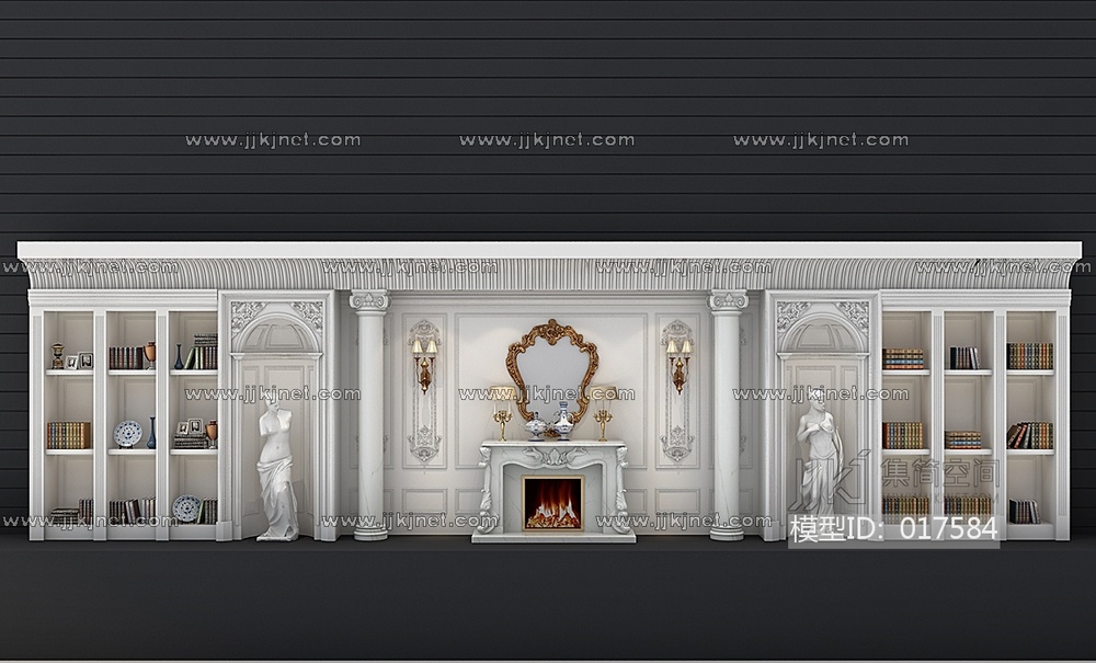 Z22-0107欧式壁炉背景装饰柜人物雕塑组合 3d模型下载 [模型ID:17584]