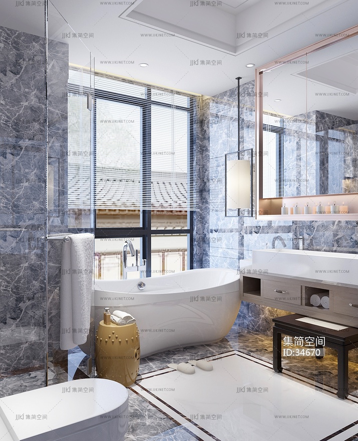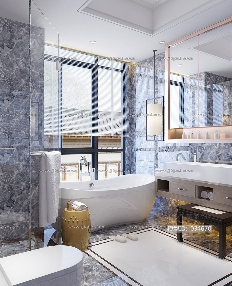 H23-0315新中式卫生间浴缸鼓凳毛巾 3d模型下载 [模型ID:34670]