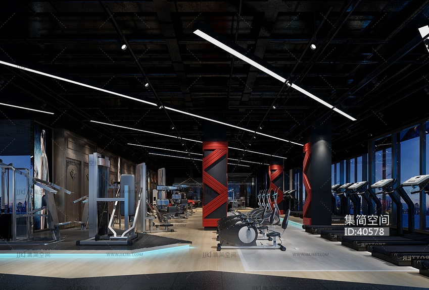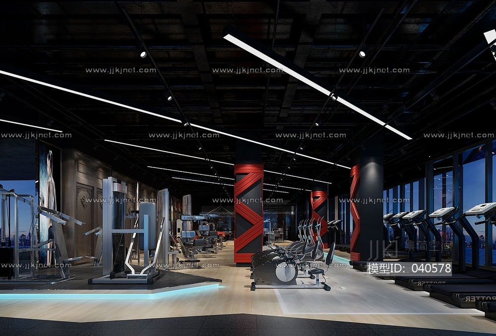 Z19-0511健身房工业风健身会所健身房健身器材器械 3d模型下载 [模型ID:40578]