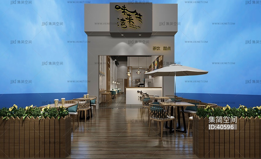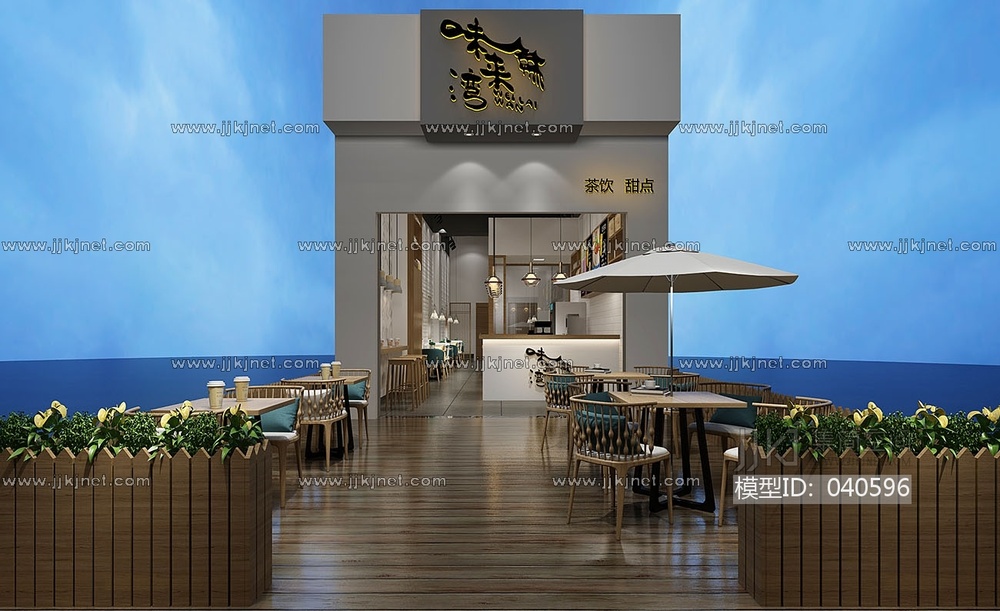 Z13-0512现代饮品店茶饮甜品店门头外摆 3d模型下载 [模型ID:40596]