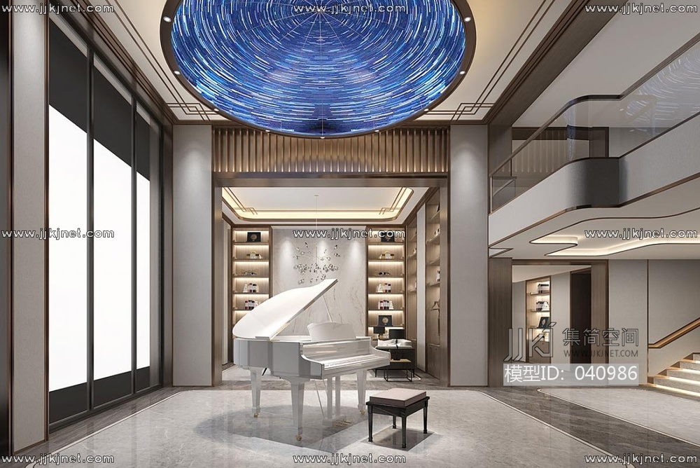 H04-0531现代别墅钢琴房书柜楼梯间 3d模型下载 [模型ID:40986]