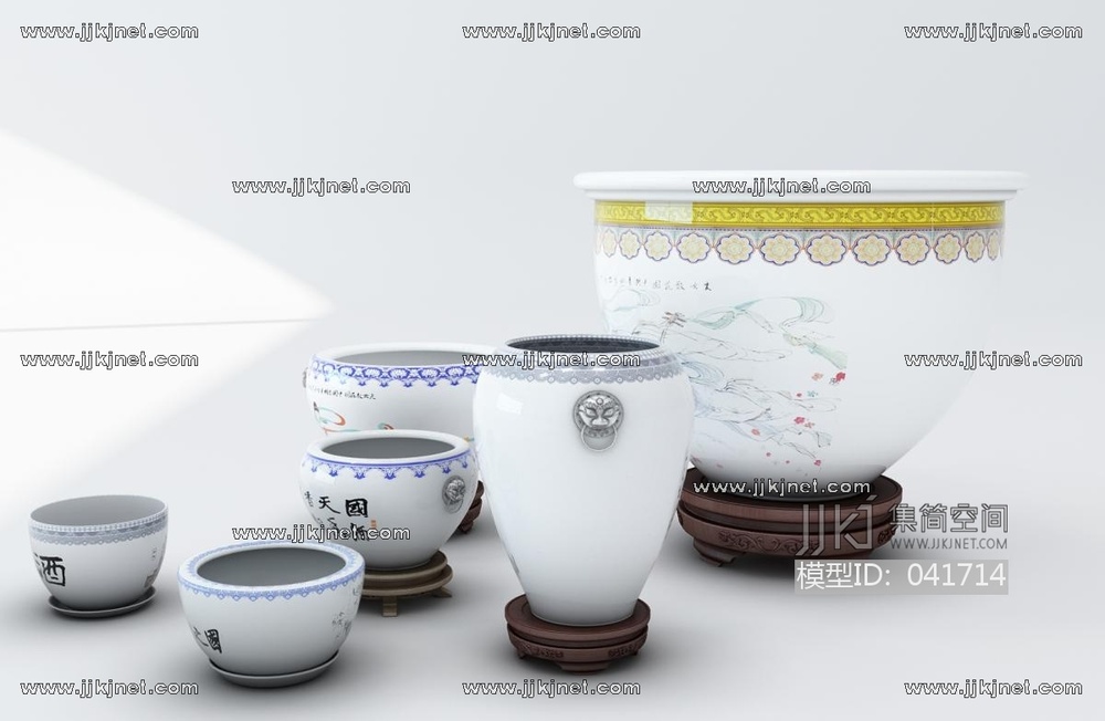Z16-0522新中式陶罐陶瓷鱼缸 3d模型下载 [模型ID:41714]