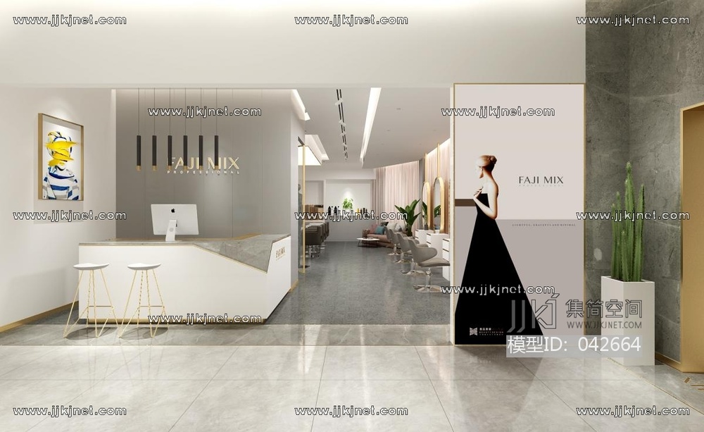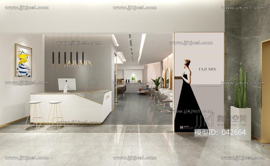 现代美发店理发店3d模型下载