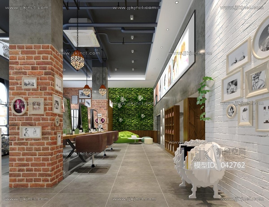 现代美发店理发店3d模型下载