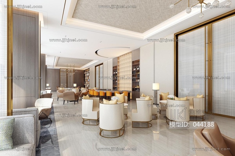 H09-0615新中式酒店餐厅大堂吧 3d模型下载 [模型ID:44188]