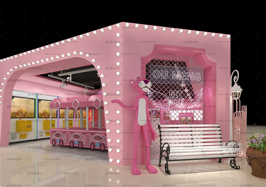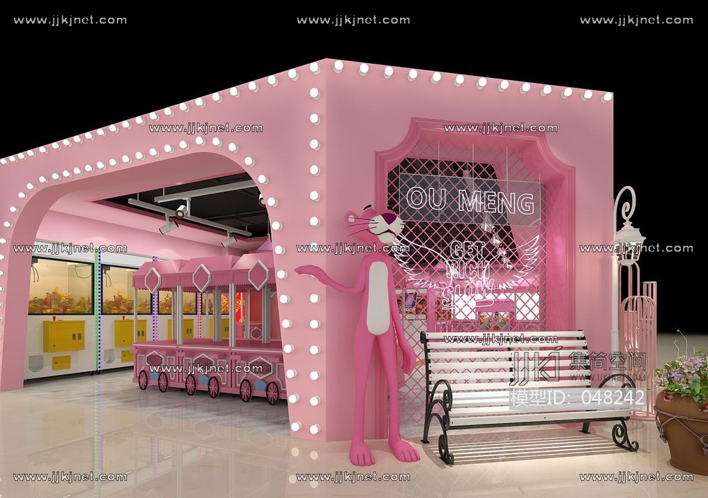 H02-0629现代网红店游戏厅娃娃机售卖车霓虹灯户外座椅路灯 3d模型下载 [模型ID:48242]