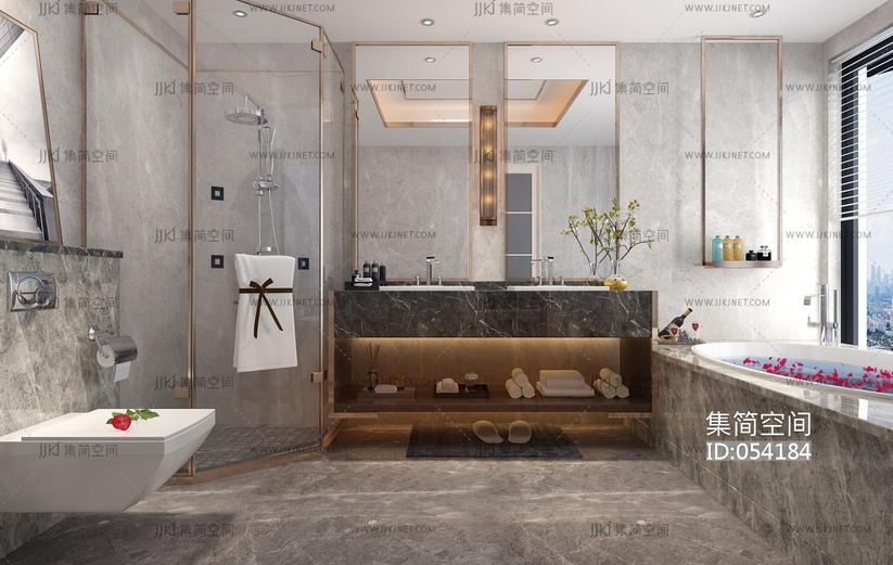 H27-0722现代新中式卫生间浴缸花瓣淋浴房壁挂马桶 3d模型下载 [模型ID:54184]