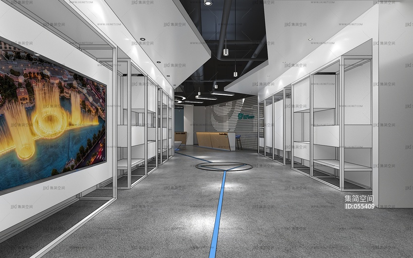 Z03-0718后现代网红咖啡厅网咖网吧走廊 3d模型下载 [模型ID:55409]