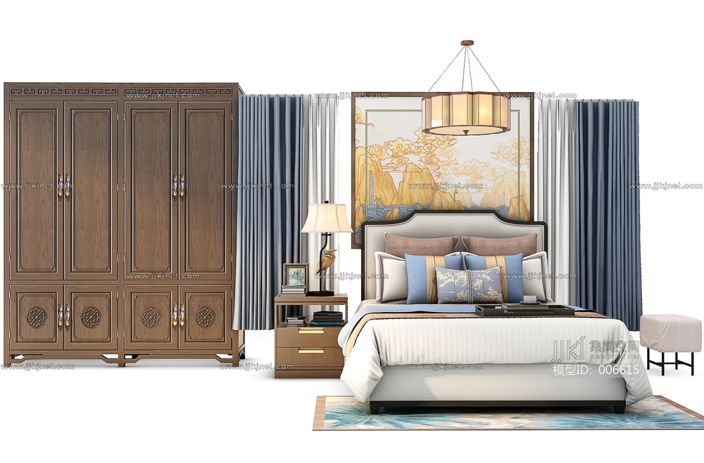 G06-0807中式现代床衣柜组合 3d模型下载 [模型ID:6615]