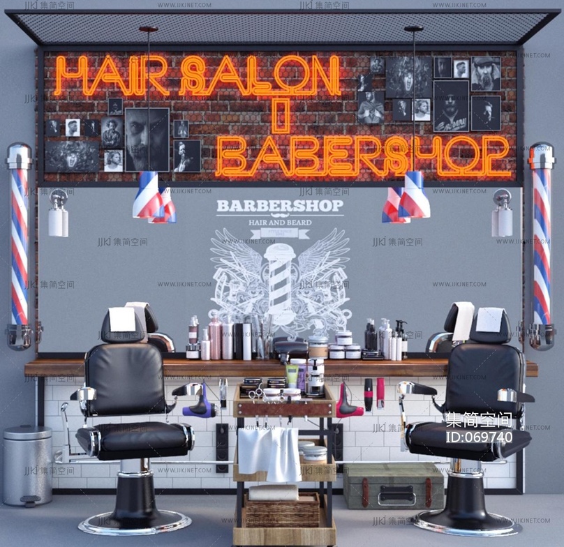 9工业风理发店 3d模型下载 [模型ID:69740]
