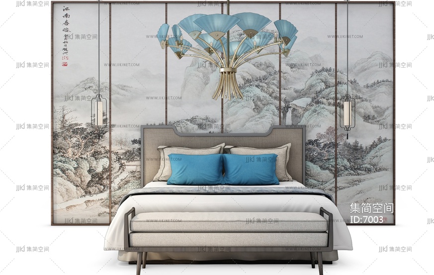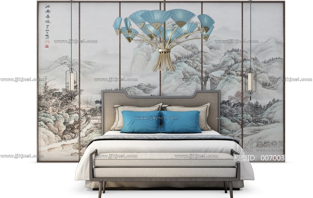 G15-090新中式床吊灯组合 3d模型下载 [模型ID:7003]