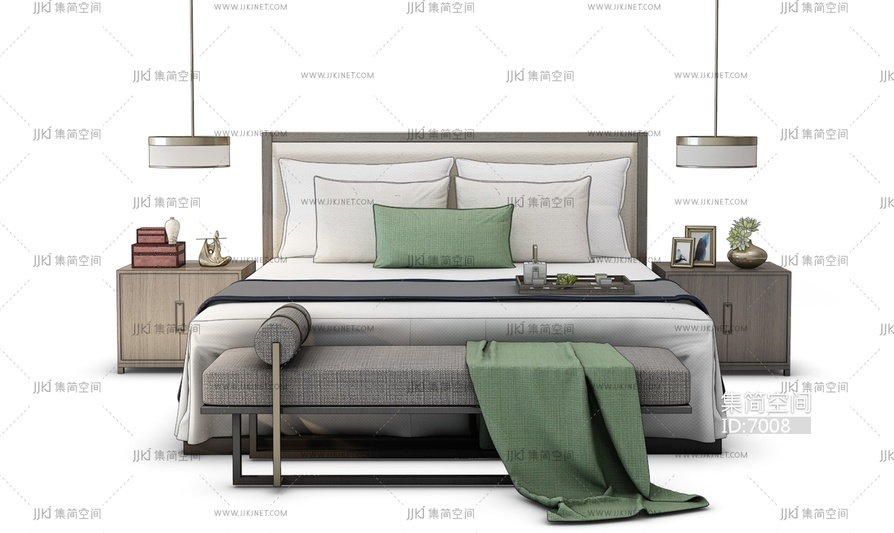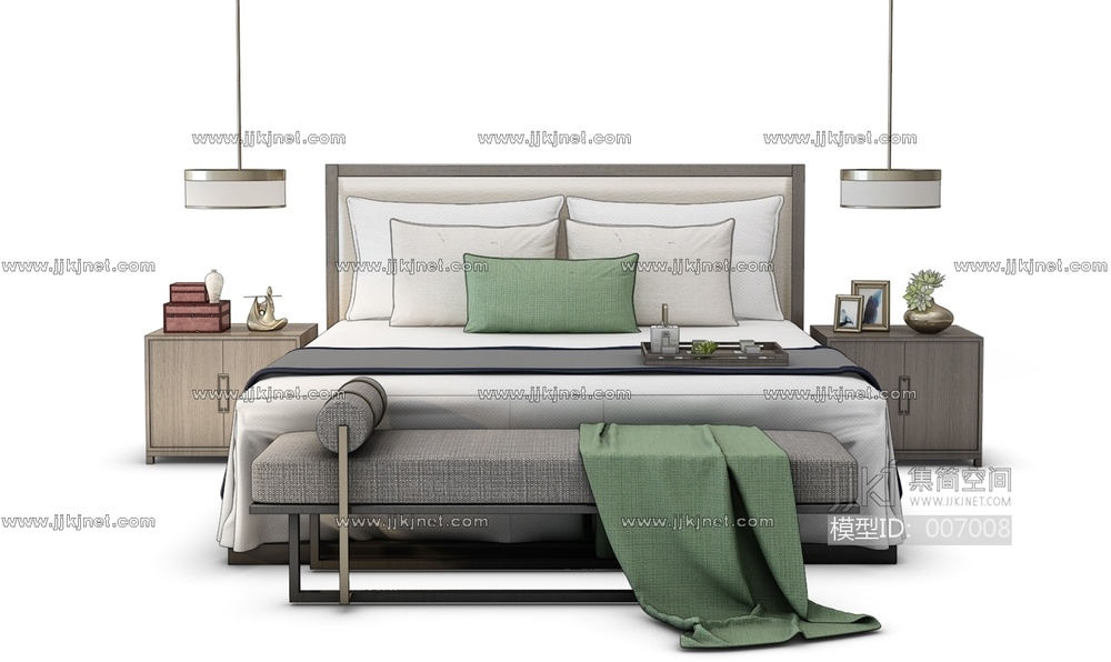G20-0906新中式床 3d模型下载 [模型ID:7008]