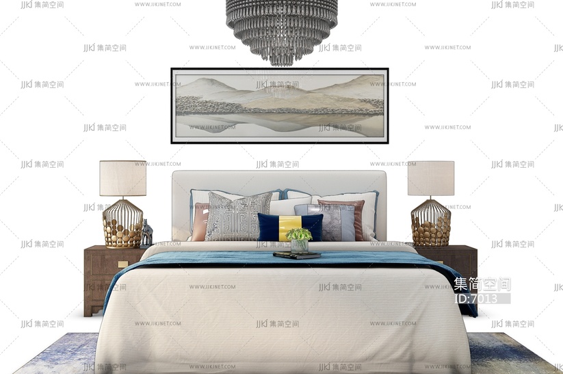 G25-0906新中式床吊灯组合 3d模型下载 [模型ID:7013]