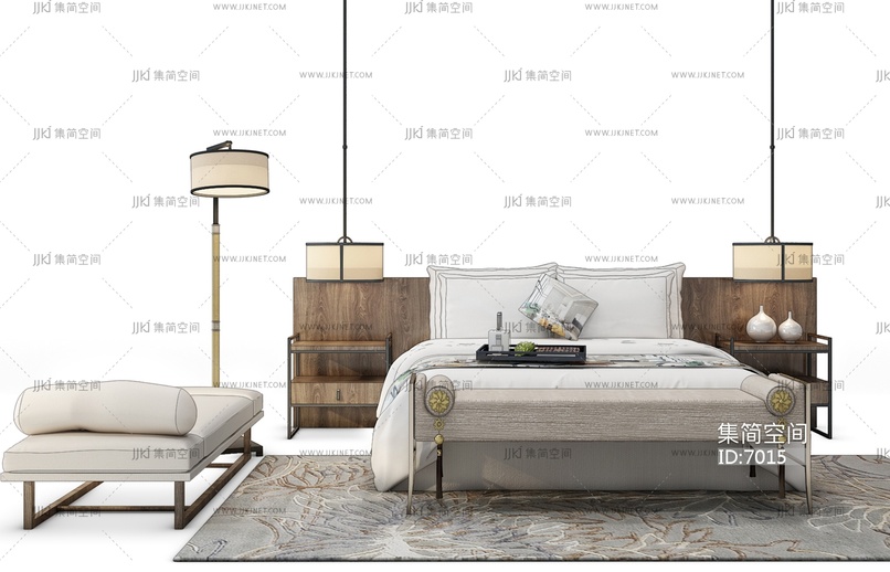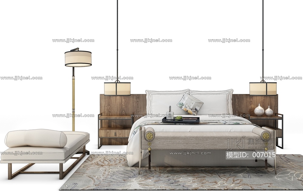 G27-0906新中式床 3d模型下载 [模型ID:7015]