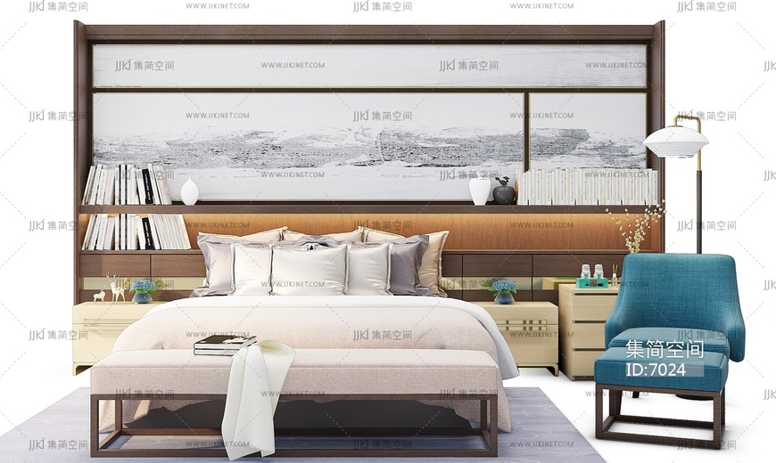 50-1024新中式床3d模型下载