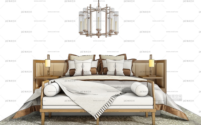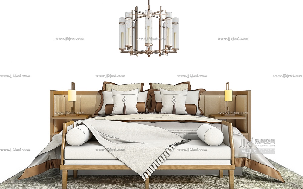 H08-0827新中式床组合 3d模型下载 [模型ID:7307]