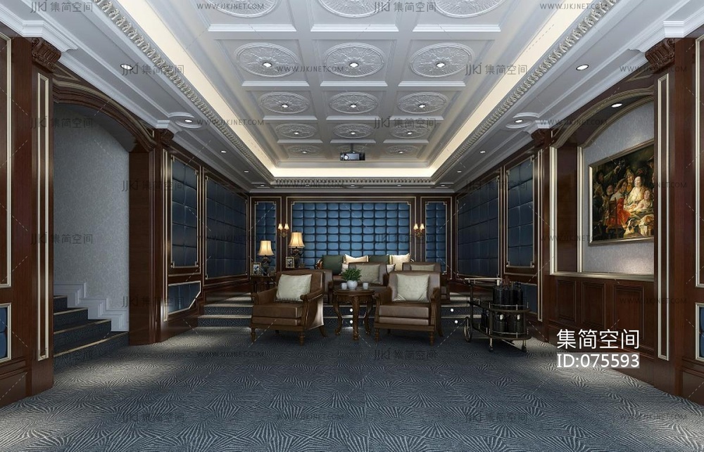 欧式美式影音室 3d模型下载 [模型ID:75593]