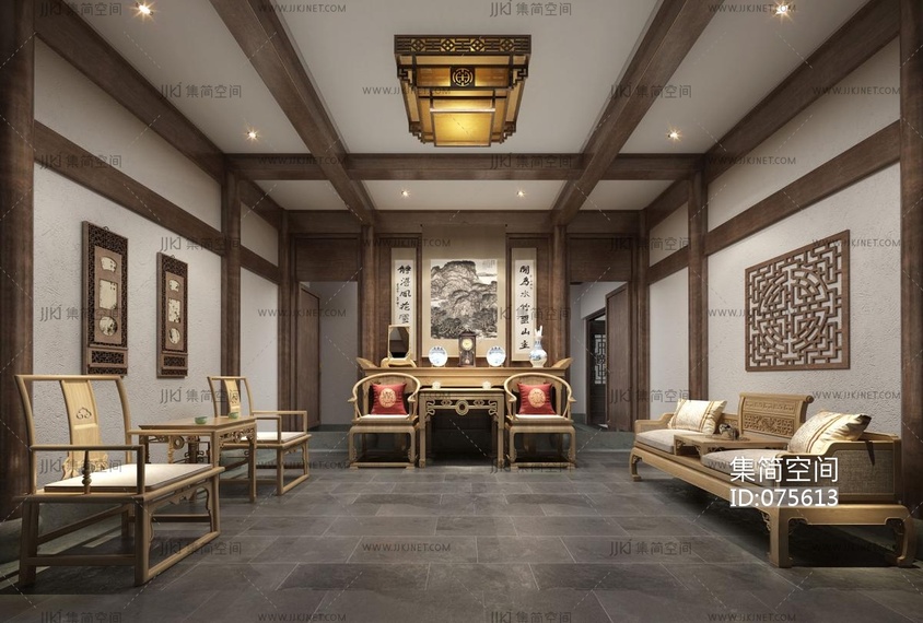 中式古典雕花民宿中堂中式 3d模型下载 [模型ID:75613]
