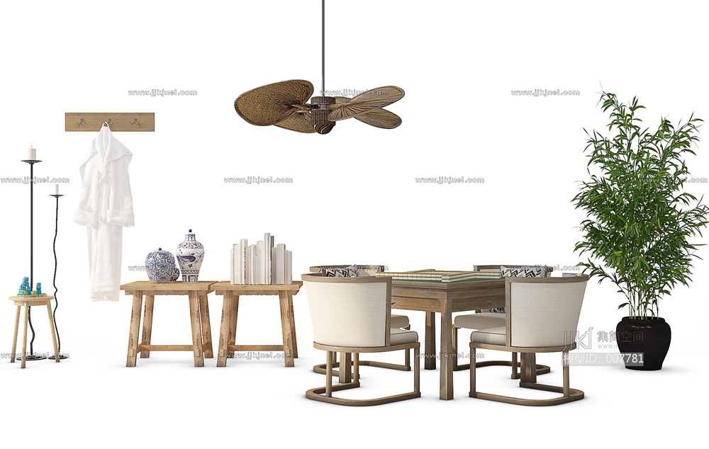 侘寂风麻将桌3d模型3d模型下载
