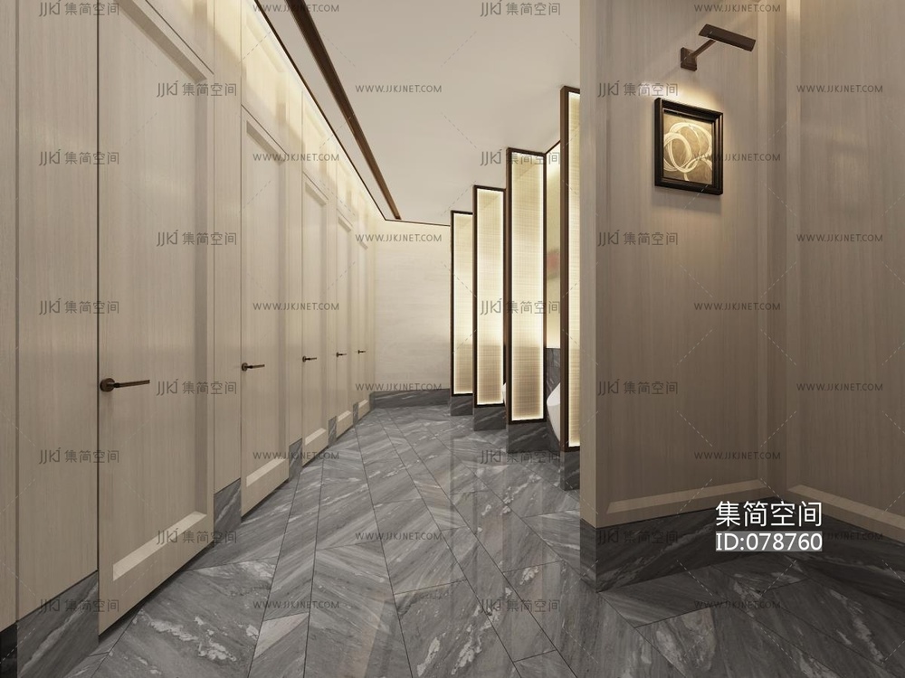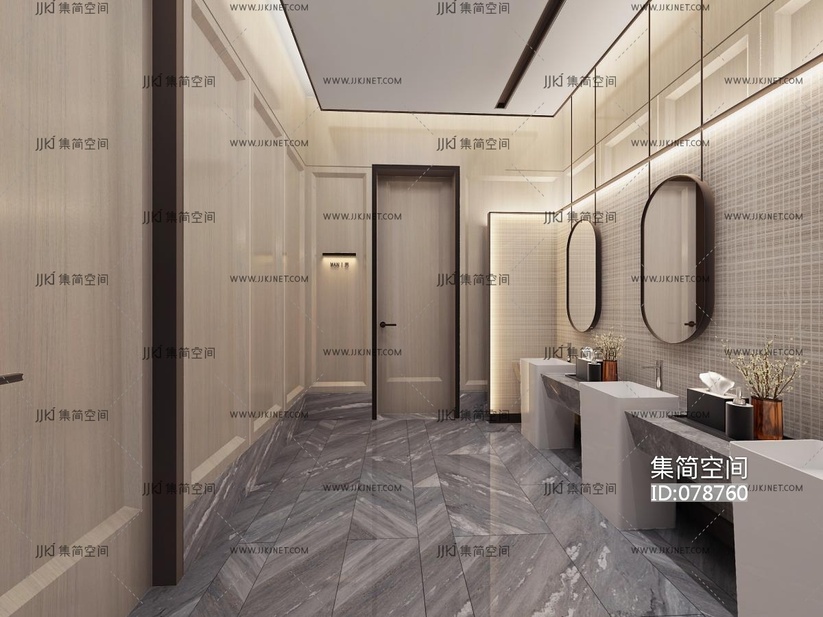 新中式酒店公用卫生间,立柱式洗手台,台上盆 3d模型下载 [模型ID:78760]