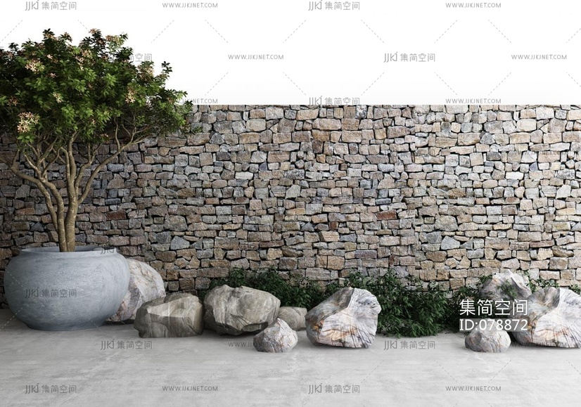 石头墙院墙围墙, 3d模型下载 [模型ID:78872]