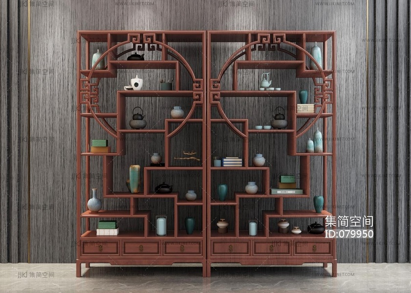 -新中式书柜3d模型下载