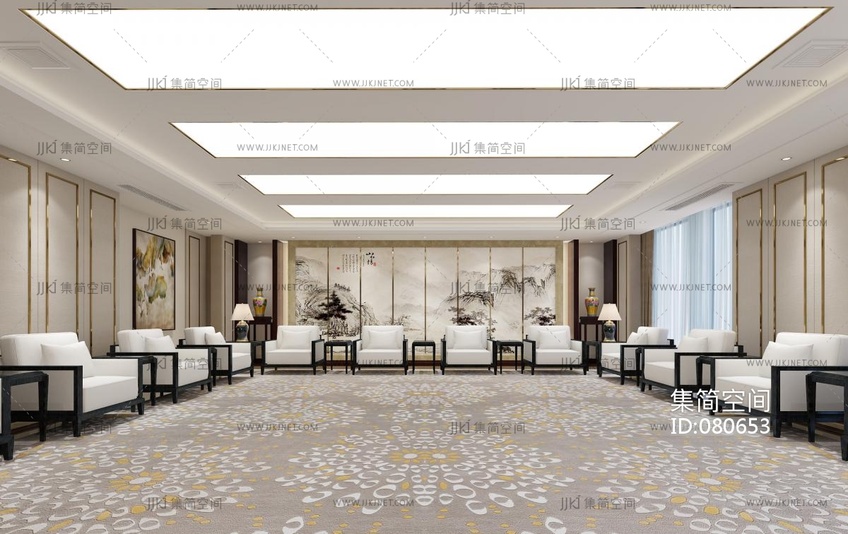 新中式贵宾接待室洽谈室,会议室沙发 3d模型下载 [模型ID:80653]